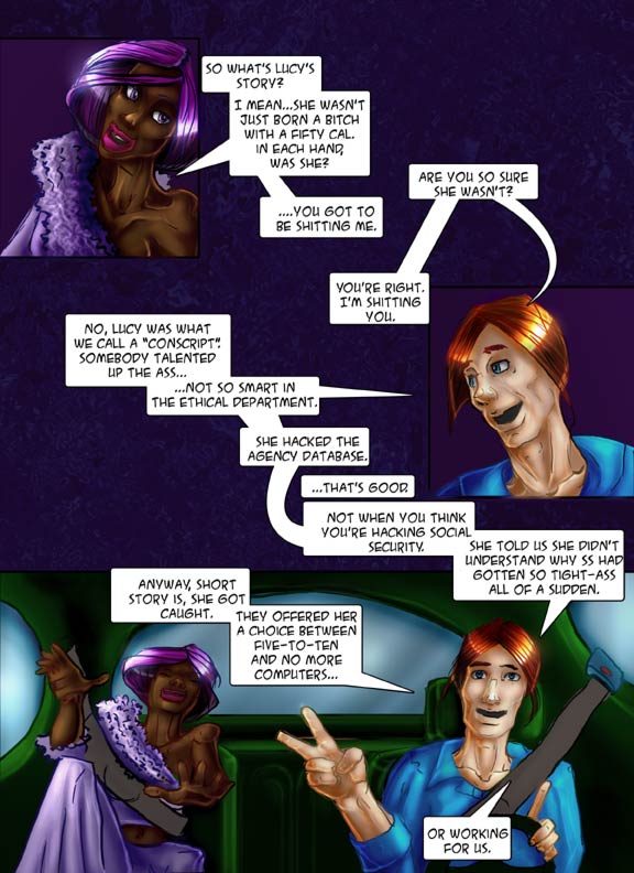 I told you we'd be doing a lot of this. Incidentally, I know it's a three-panel update, but it's also a LOOOOOONG conversation. I figured your brains would feel better if I didn't clutter it up with lots and lots of panels.